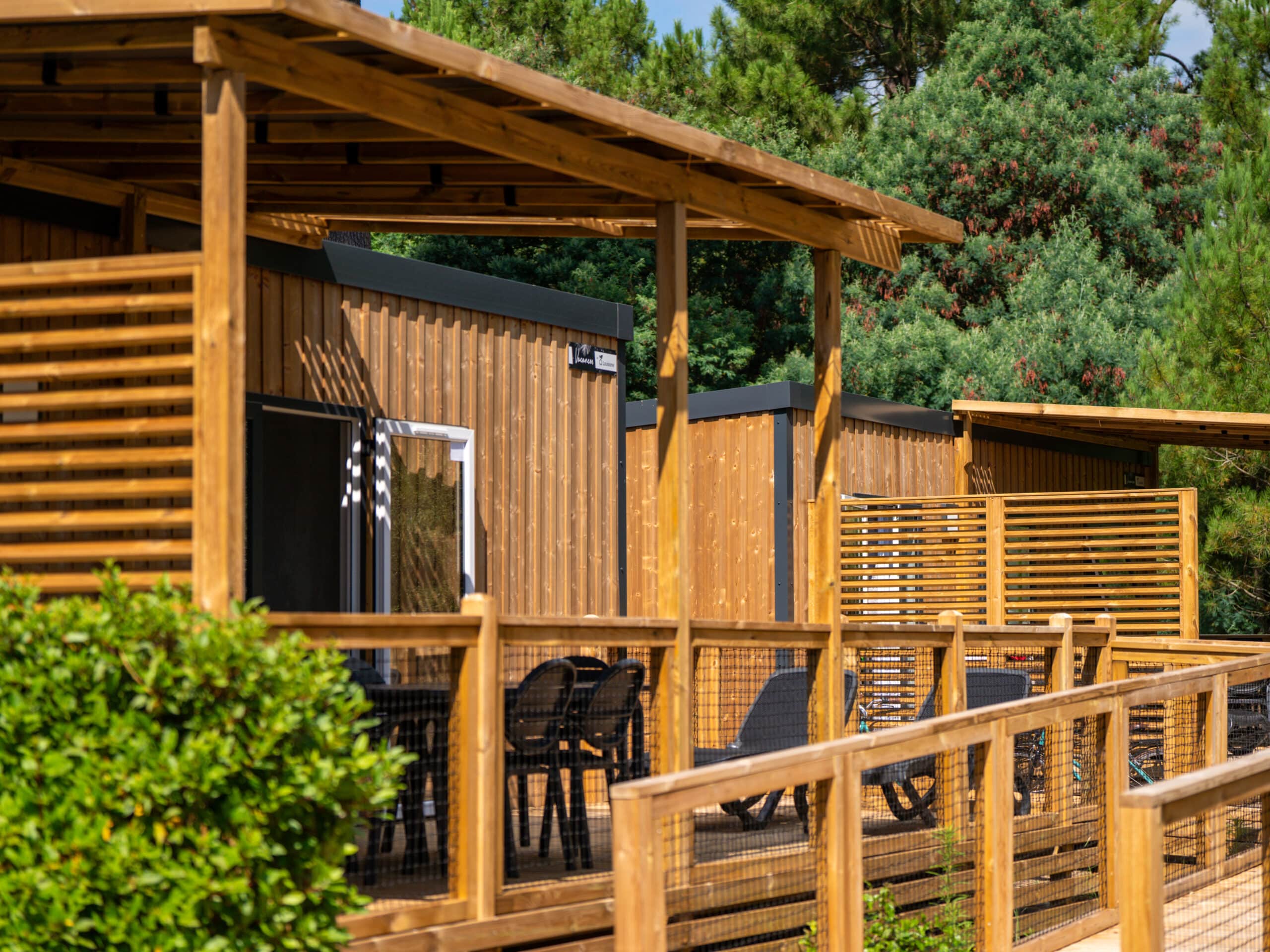 Fall under the charm of our superb wooden outdoor mobile home for a successful holiday. Large kitchen and bar, spacious and panoramic terrace, living room with TV and AIR CONDITIONING, its beautiful bathroom communicating with the master bedroom (1 double bed 160x190cm) and its child’s bedroom (2 single beds 90x190cm) with sheets included … Our Comfort Mobile Home of 30m2 will seduce you and make you spend a comfortable holiday.